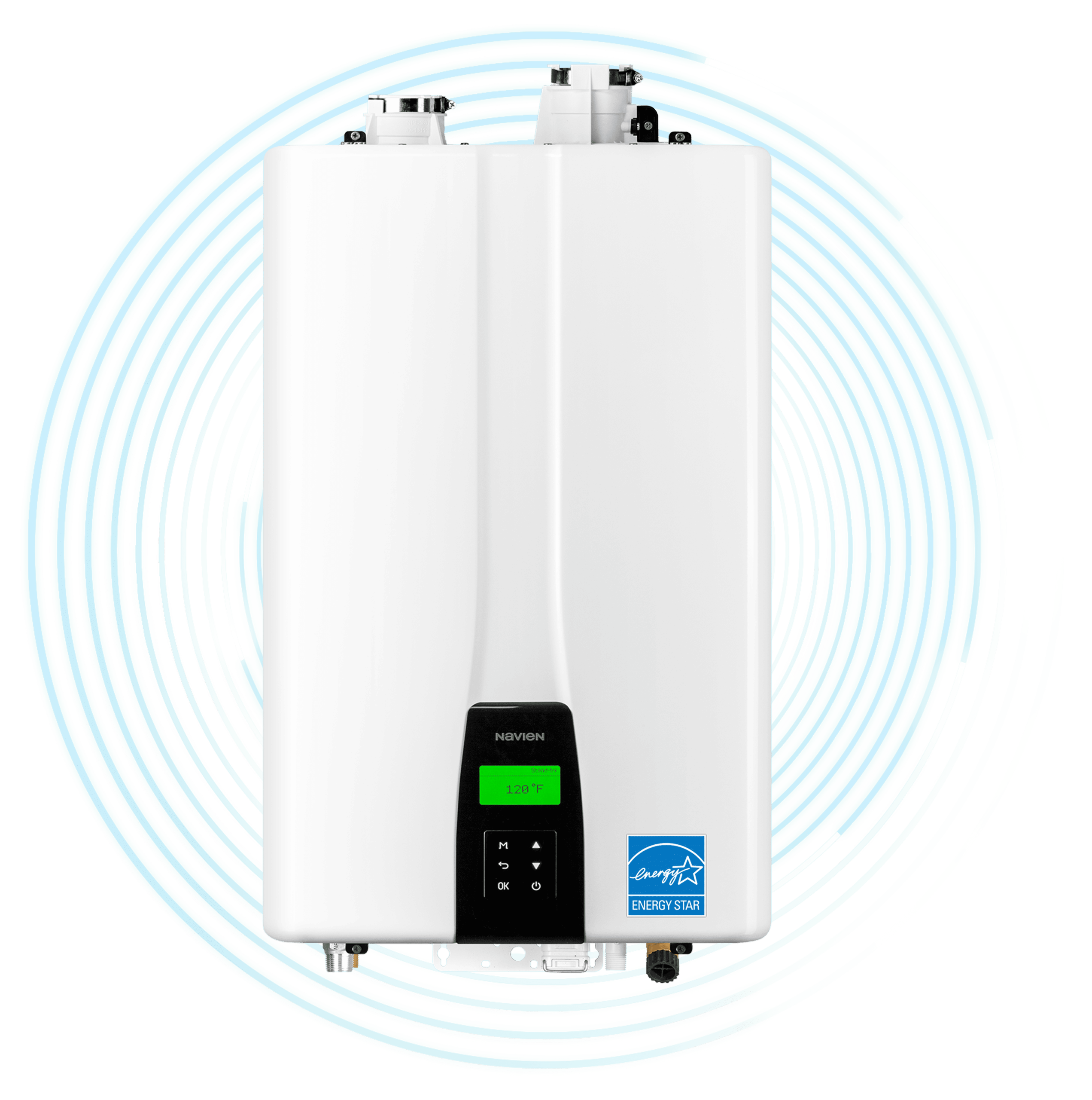 Con la tecnología de condensación y modulación inteligente, los modelos NPE y NPN de Navien ofrecen agua caliente de forma constante, segura y